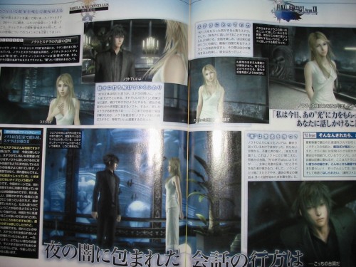 จากนิตยสาร Famitsu ในสัปดาห์นี้ เราได้เห็นเกมส์จากโปรเจ็กซ์ Fabula Nova Crystallis เต็มๆไปถึง 12 หน้า และในจำนวนนั้นก็มีข้อมูลของ Final Fantasy Versus XIII แต่แย่หน่อยที่ยังไงก็มีข้อมูลของระบบการเล่น และไม่มีรายละเอียดลงลึกอะไรมากจากรูปภาพที่ลงมาด้วย (ทั้งหมดทางนิตยสารยืนยันว่าเป็นภาพในขณะเล่นจริงๆ) แถมด้วยข้อมูลเล็กๆน้อยๆของตัวละครชายและหญิง 2 คน ที่คุ้นหน้าคุ้นตากันดี